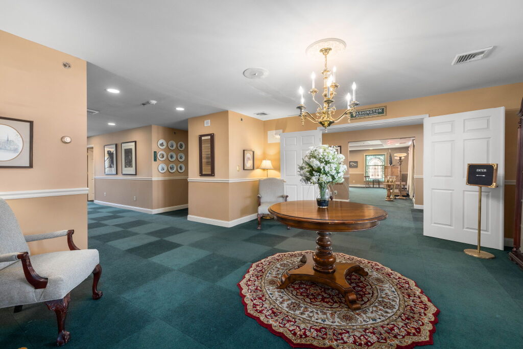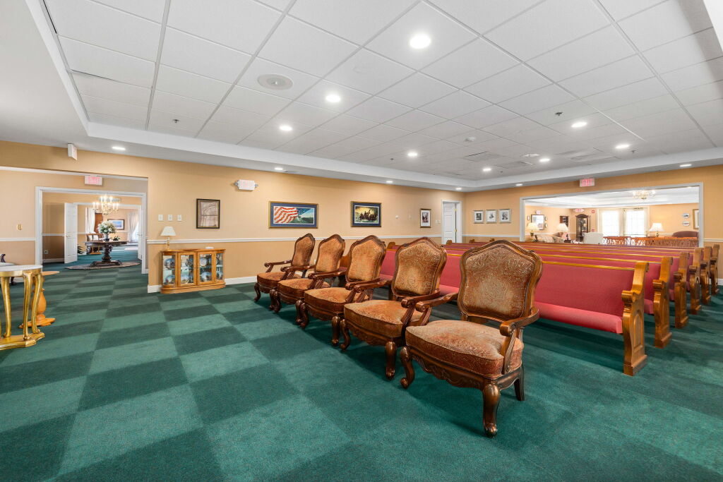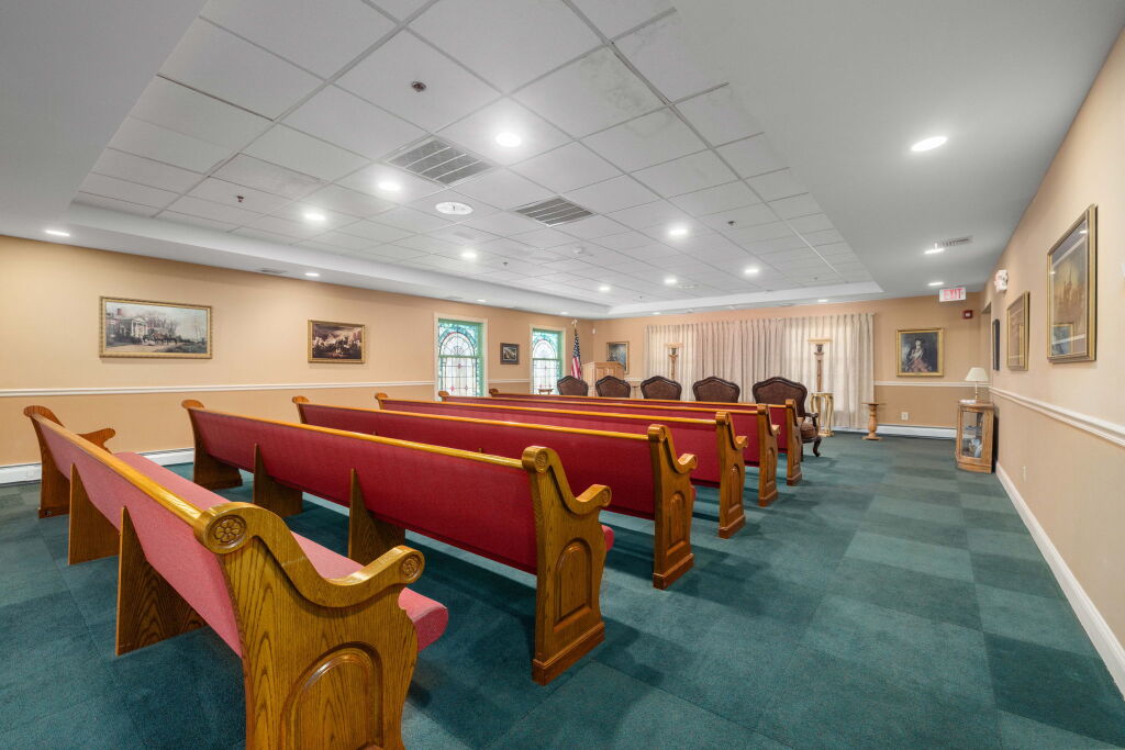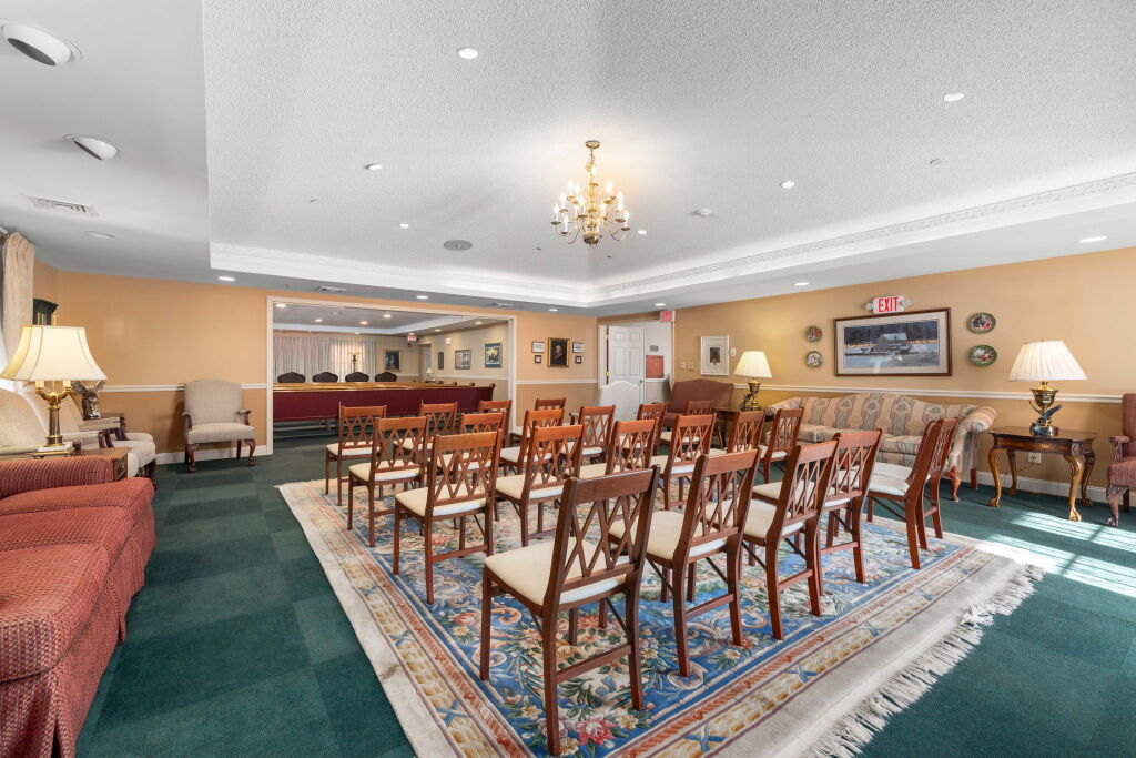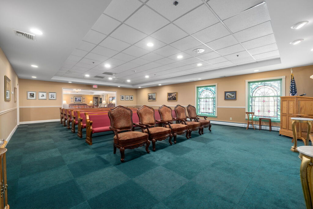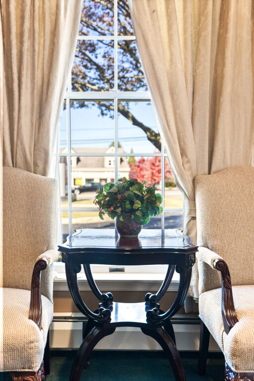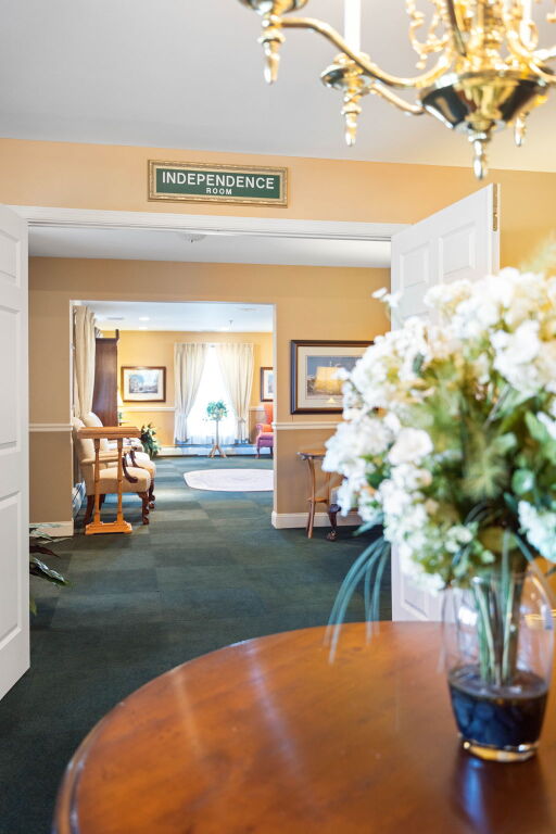 Like most local funeral homes, our funeral home in Malvern does not have a chapel. Instead, we have several rooms in the funeral home that can accommodate groups of varying sizes. Recently renovated, the spaces are modern, fresh, and comfortable, with soft neutral colors, plush furniture, and artwork by local artists.