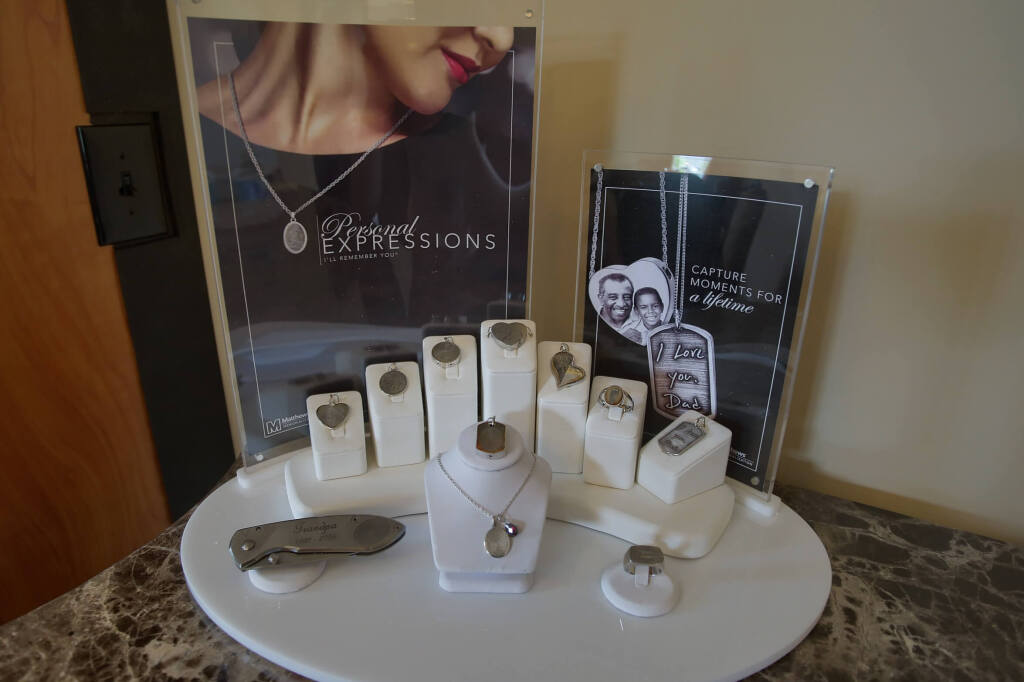 -Cremation jewelry-men's and women's necklaces, bracelets, pendants and rings. We can create custom jewelry made from the thumbprint or your mom, dad or any other loved you.